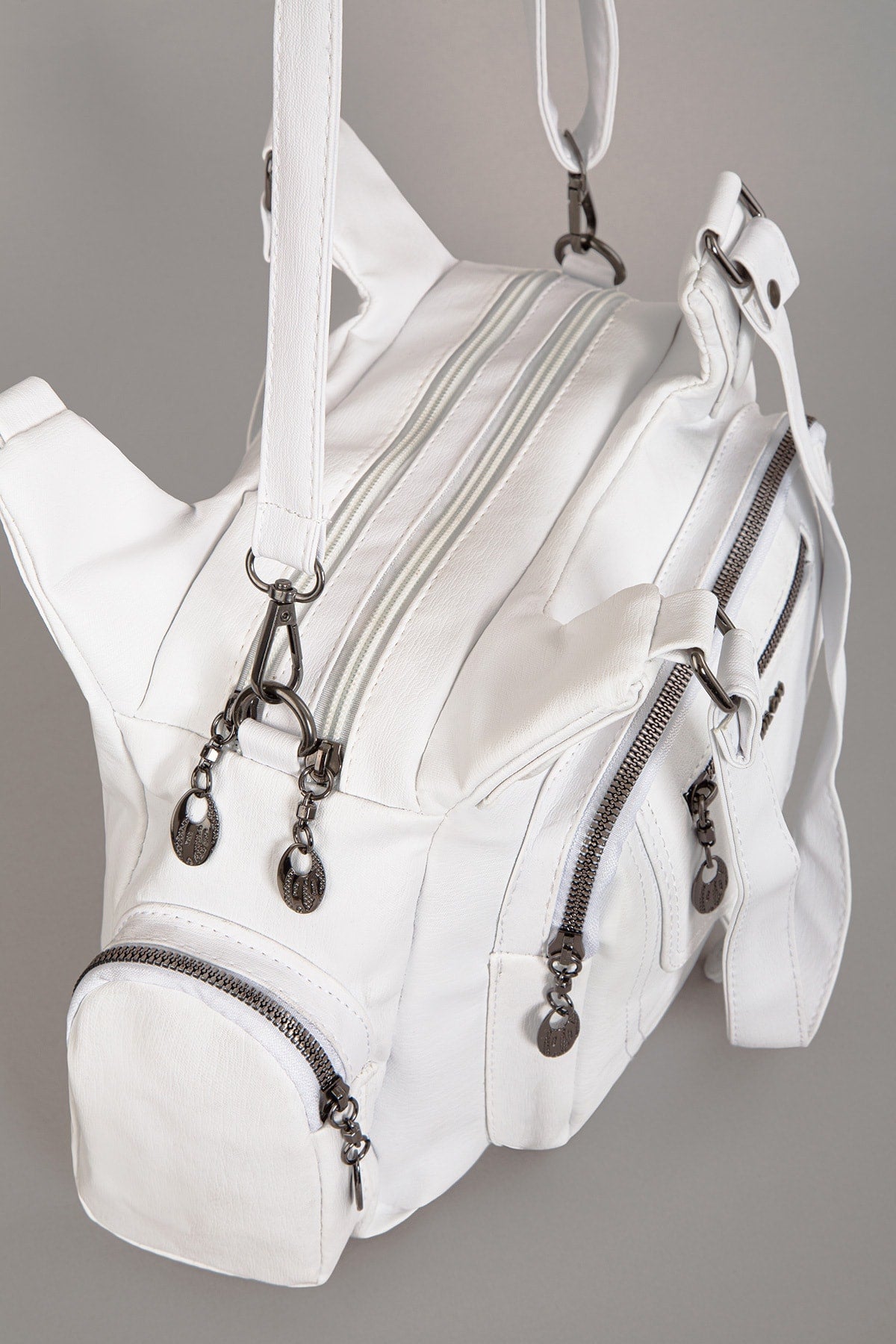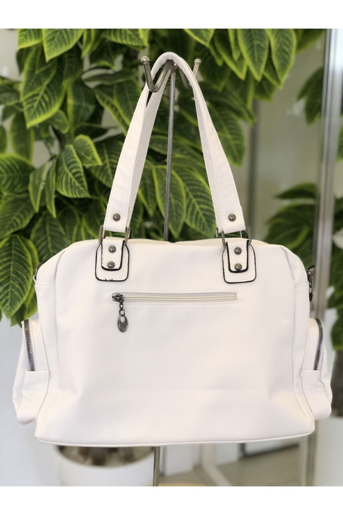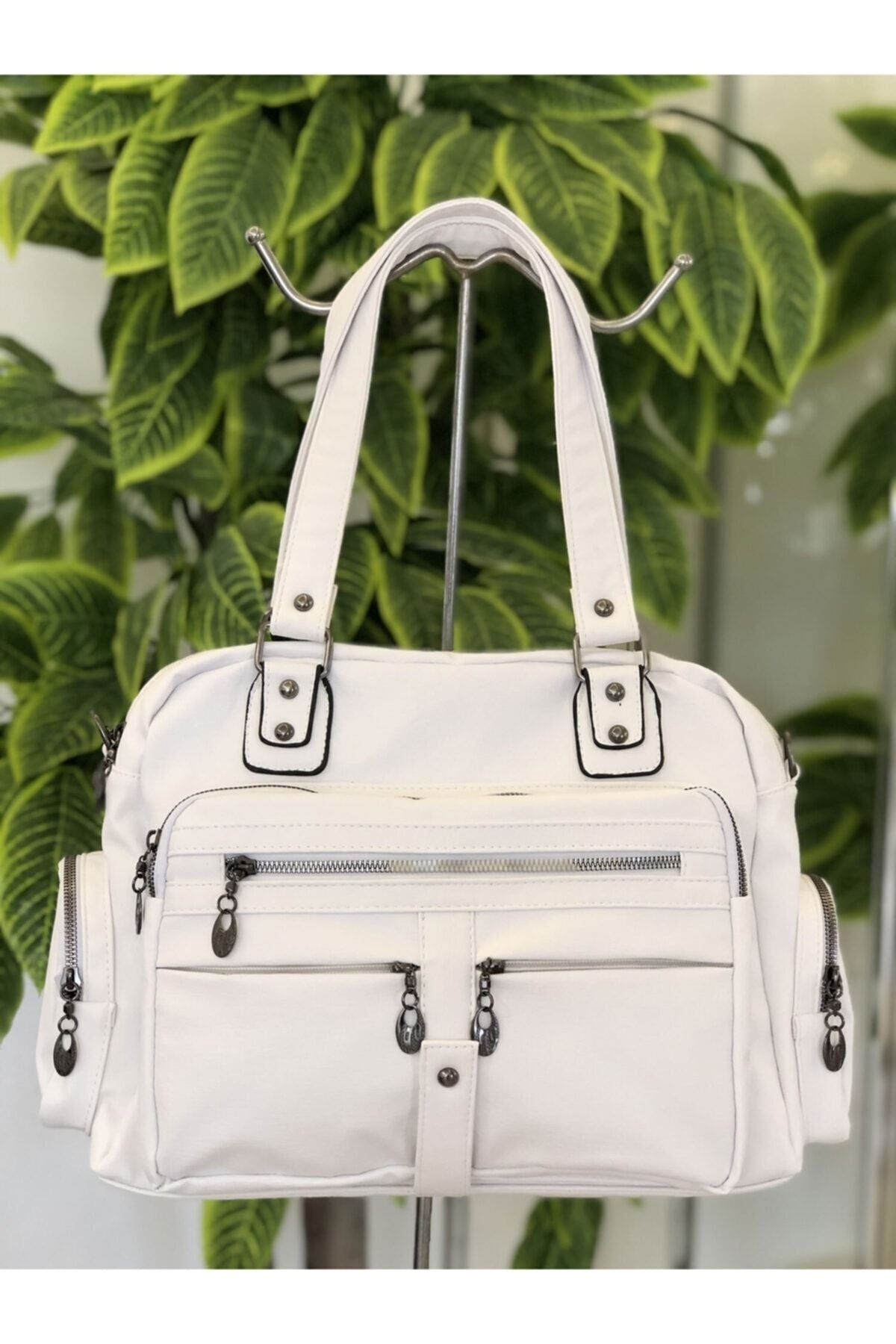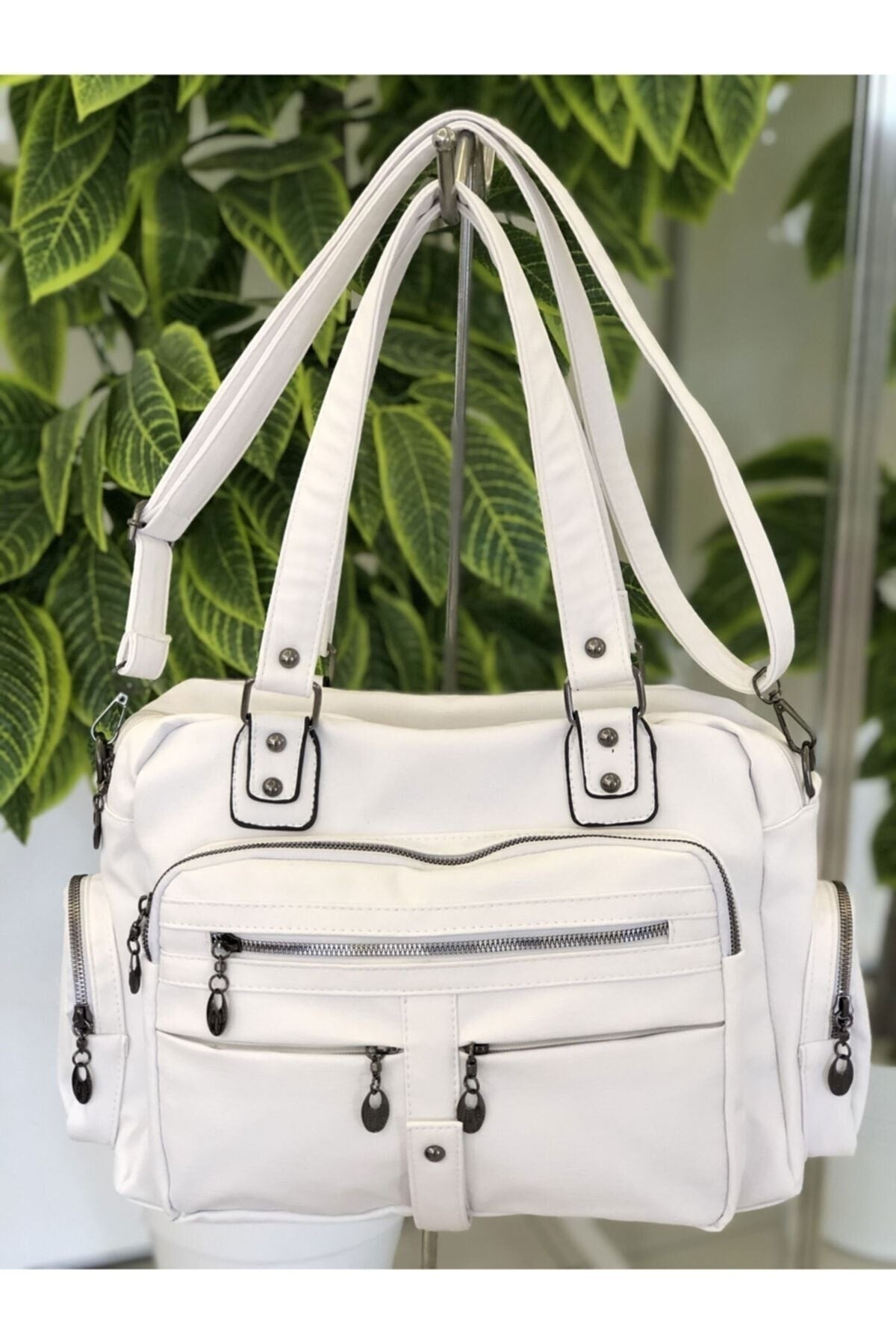 Women'S White Wash Leather Multi-Section Shoulder And Hand Bag