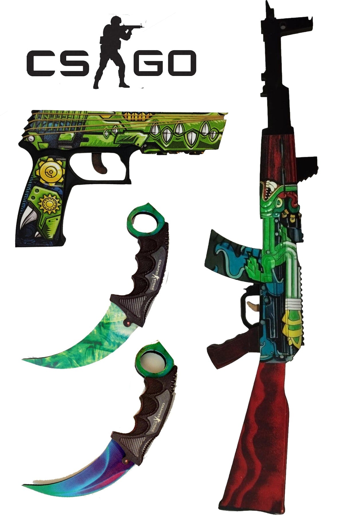 Wooden Cs - Go Ak47 Fire Snake Skin Covering Toy Set3